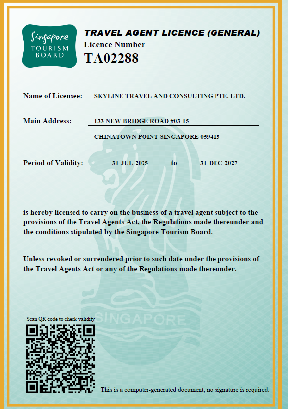欢迎访问新加坡天宇旅游官网, 新加坡天宇旅游成立于2011年,新加坡旅游局正规注册公司,公司注册号:201133016H, 旅游执照编号:TA02288 ,公司主营业务:各国签证办理,出境游,游轮,周边游,私人订制行程,新加坡地接,新加坡景点门票
